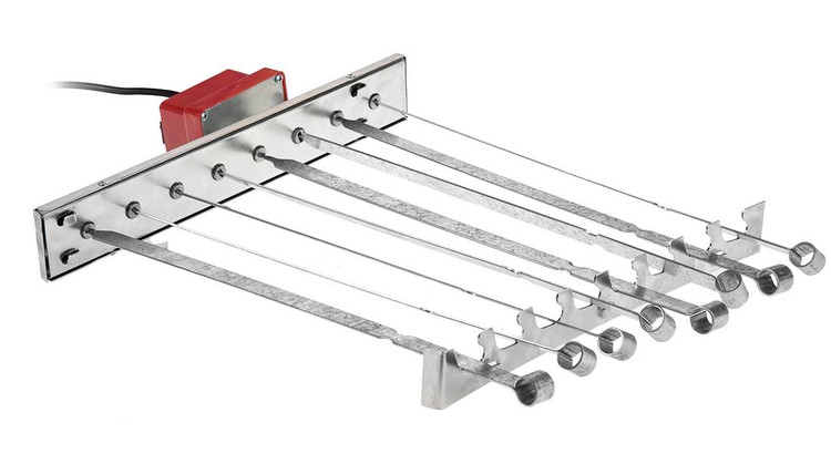 دستگاه سیخ گردان امکان چرخش همزمان 8 عدد سیخ حول محور خود و مقابل زون تابشی کباب پر را امکان پذیر می کند . این دستگاه قابل نصب بر روی کباب پز های ضیافت مدل تابش و شعله می باشد.